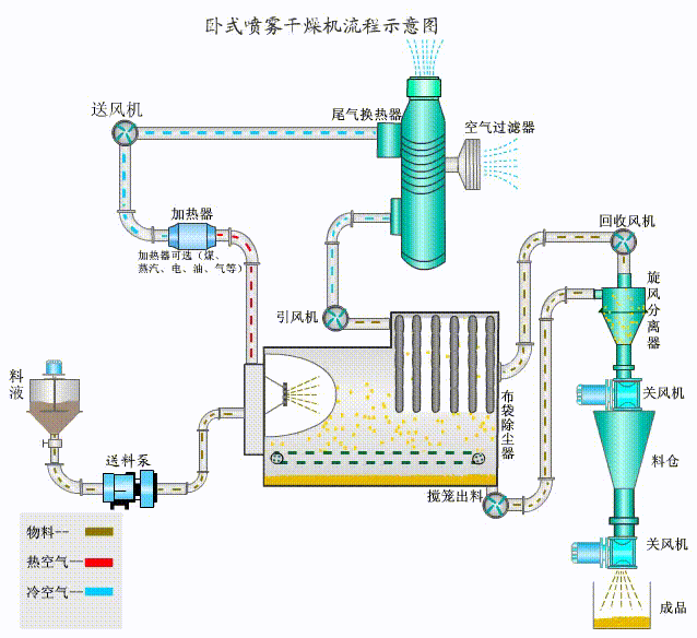 (2)熱源裝置選用蒸汽加熱、電加熱器、熱風爐等方式,壓力噴霧分為順流和混合流。